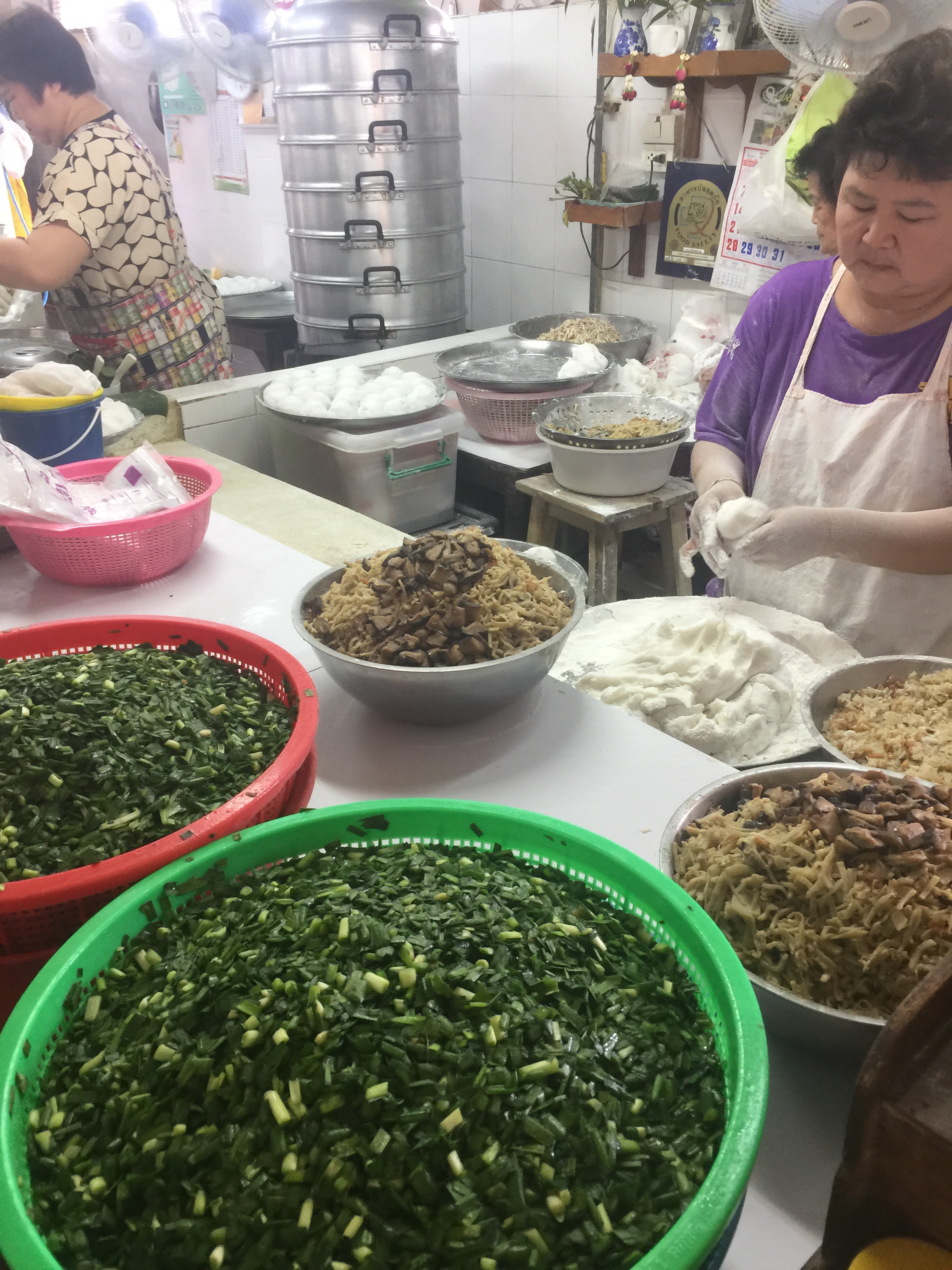 Making the popular steamed GUI CHAI soft bun with chives best eaten with a sweet sticky soy sauce with chilli and vinegar