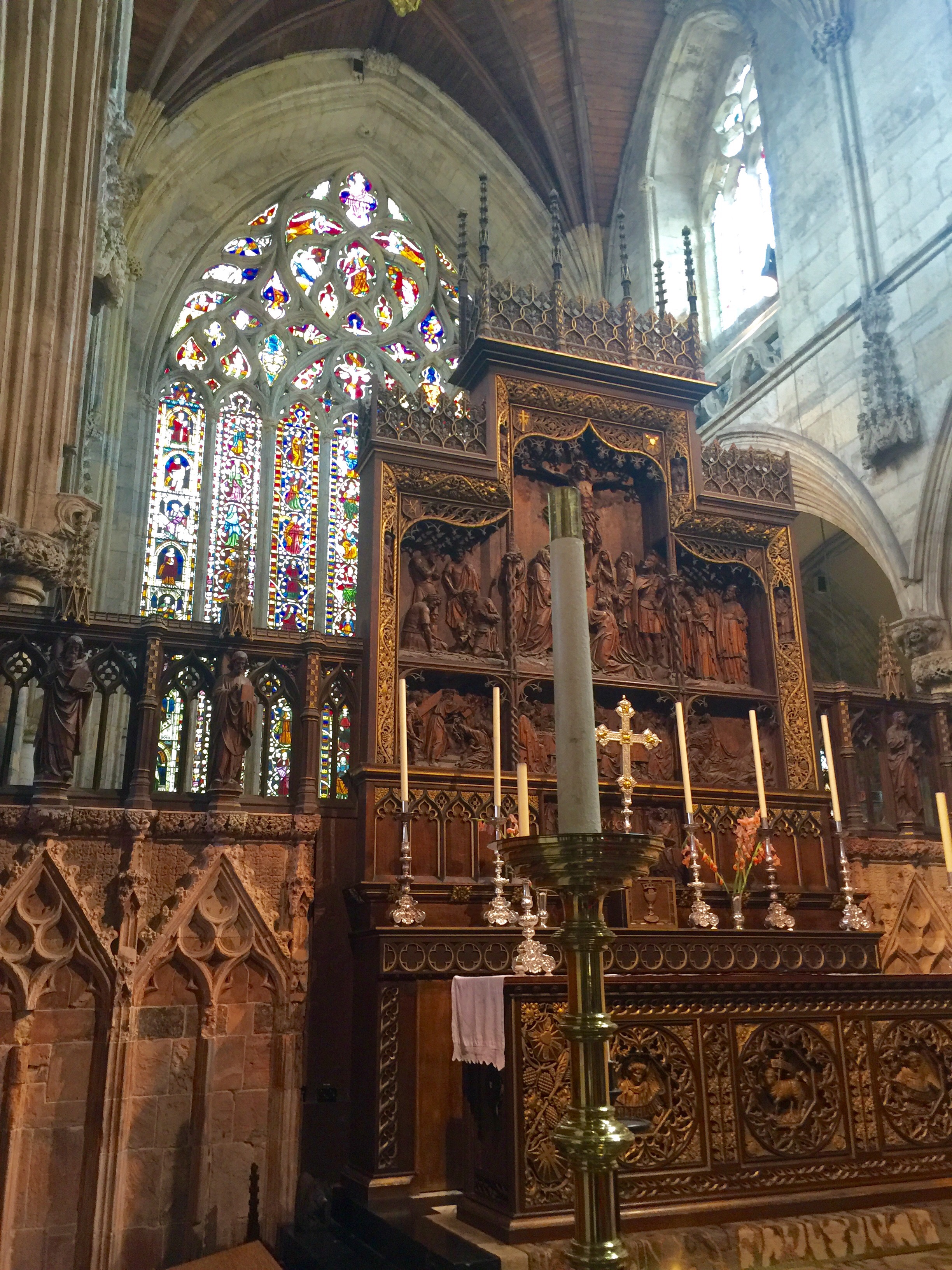 It’s a beautiful church with lovely stained glass windows and carved mice in various locations which you can search for in the woodwork.