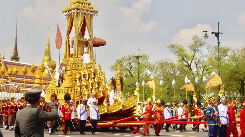 Pulled by 216 men, it will carry the ornate urn containing King Bhumibol Adulyadej’s body to the site of the cremation at Sanam Luang. It was last used in 2012 for the cremation of Princess Bejaratana Rajasuda, the late king’s cousin.