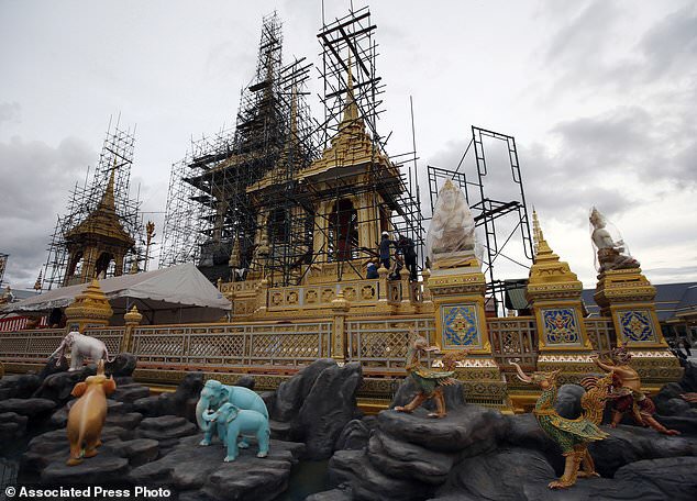 BANGKOK – Thai artists and craftsmen are putting the finishing touches on an elaborate crematorium complex ahead of the funeral of King Bhumibol Adulyadej, who reigned for 70 years before his death on Oct. 13, 2016.