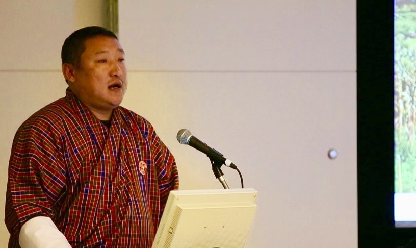 Mr. Tashi Tenzin, Head of Services Division, Tourism Council of Bhutan, gives delegates attending the Tourism Expo Japan 2017 forum an update on the status of the tourism industry in Bhutan.