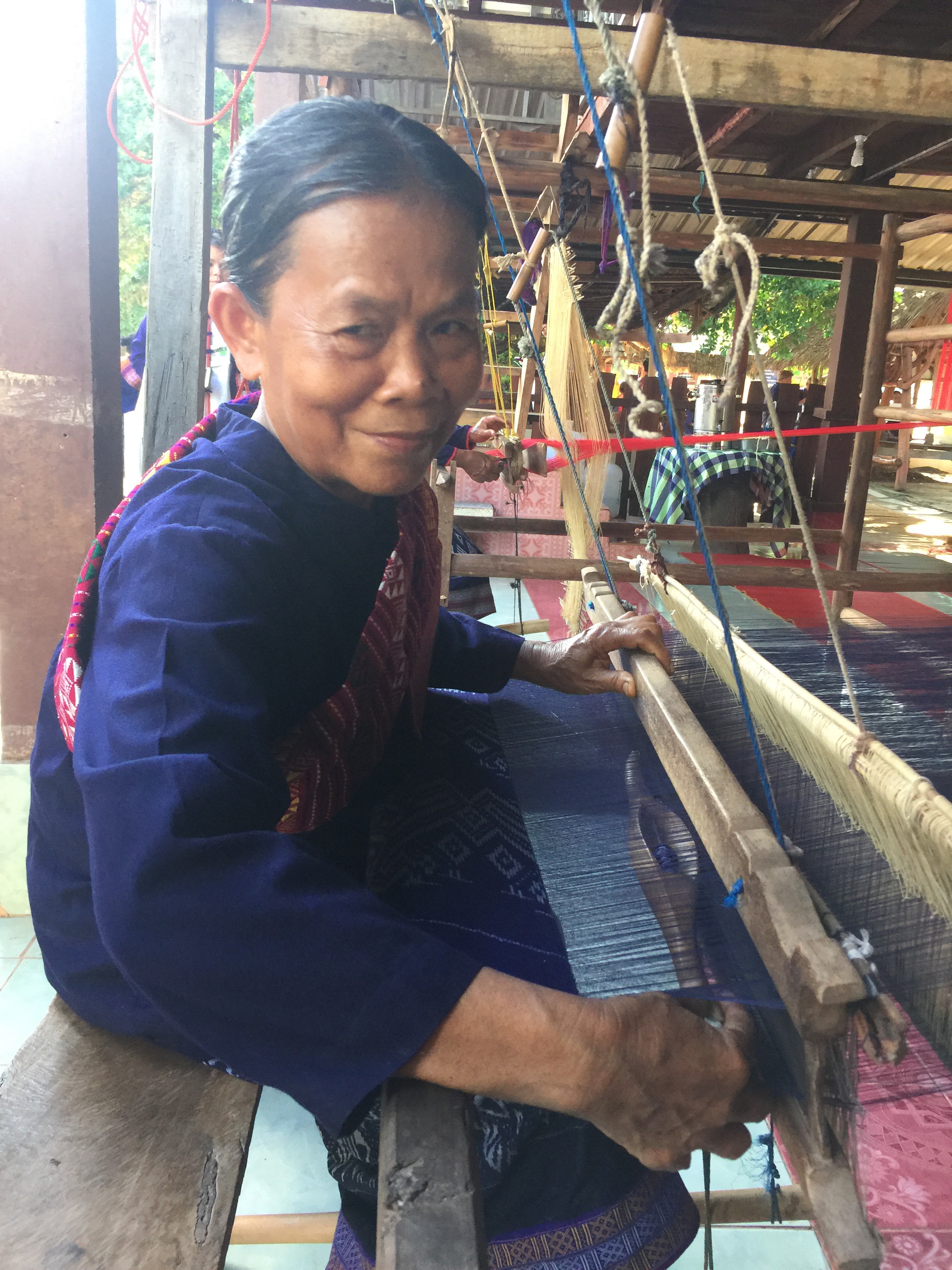 The village has a small collection of weavers who grow and process cotton, spinning and dying yarn to produce their own cloth. A true cottage industry.